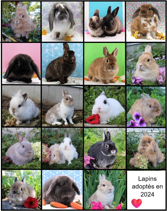 Grâce à vous qui acceptez de partager nos publications et avec l’aide de nos animaleries partenaires, nous avons trouvé des familles pour 21 lapins adultes et 8 cochons d’Inde. De ce nombre, 13 lapins étaient des retraités de notre ferme, et 8 provenaient des abandons du public.